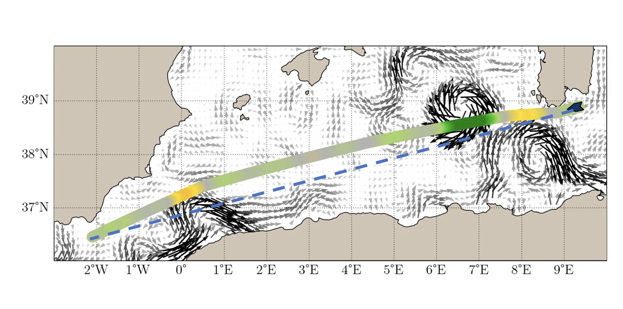 This course deviation enabled the Ciudad de Cadiz to increase its average speed from 16.5 to 17 knots for 36 hours, reaching a peak speed of 18.2 knots, without increasing engine power. The acceleration, confirmed by the ship’s AIS (figure 2), was due to an intense anticyclonic eddy to the southwest of Sardinia. Unlike operational numerical models, HIRES-CURRENTS data perfectly positioned this eddy structure. This short-term optimal routing, based on ocean currents, enabled the Ciudad de Cadiz to save 70 minutes on its route. And ultimately, reduce the ship’s fuel consumption by 5% over 36 hours (press release of June 28, 2023).
