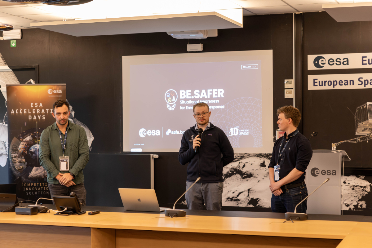 While all teams delivered impressive results in their prototype maturity, the winning project was be.safer, developed by the Trillium Technologies team. The prototype stood out for its innovative approach to enhancing the preparedness for, and execution of, mass evacuations. Addressing the challenges faced by crisis managers and decision-makers, such as inefficient communication and use of resources, be.safer offers a platform for Brussels powered by a space-enabled toolbox that enables real-time decision-making. The Trillium Technologies team has now been invited to apply for an ESA Cooperative Agreement, valued at up to €100,000, to further develop this winning tool. This support will enable the team to refine their solution, explore its scalability, and bring it closer to real-world implementation.